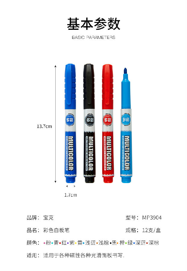 MP3904白板筆12色價格0.87乘以12